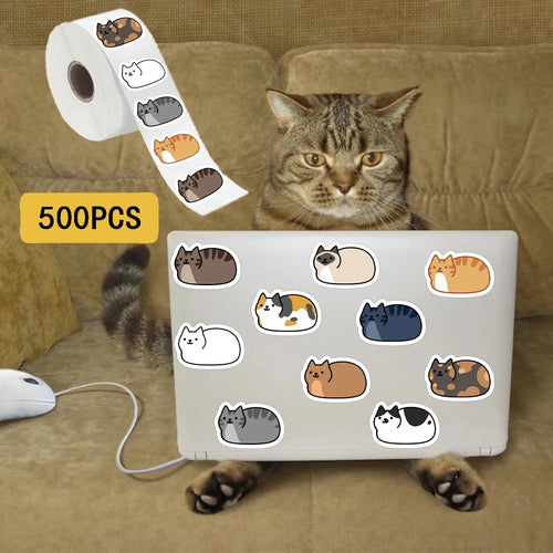 500PCS Kawaii Cartoon Cat Tuo Tuo Roll Stickers Skateboard Laptop Luggage Skateboard Phone Gift Waterproof Phone Cute Sticker